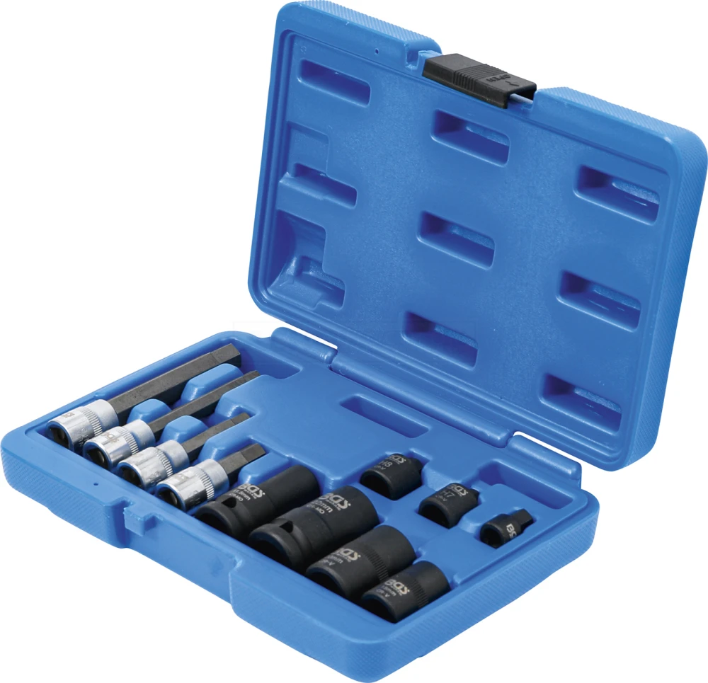 - 1 Biteinsatz, Antrieb: 10 mm (3/8″), Länge: 50 mm, Innensechskant 9 mm