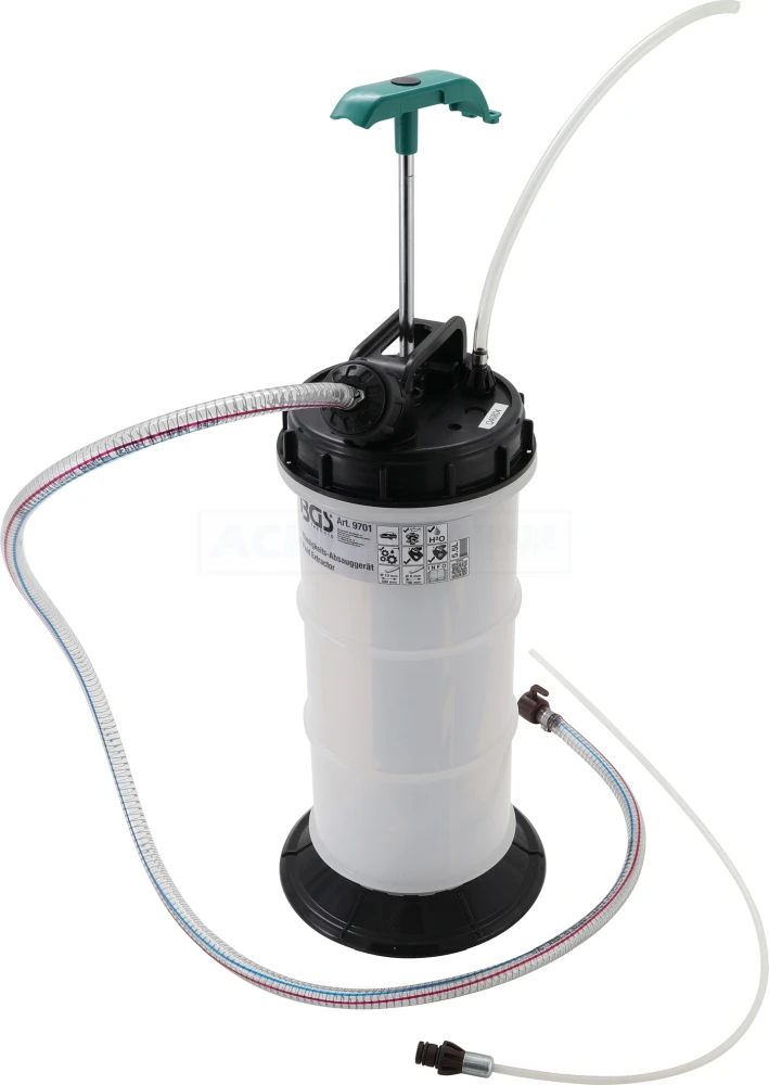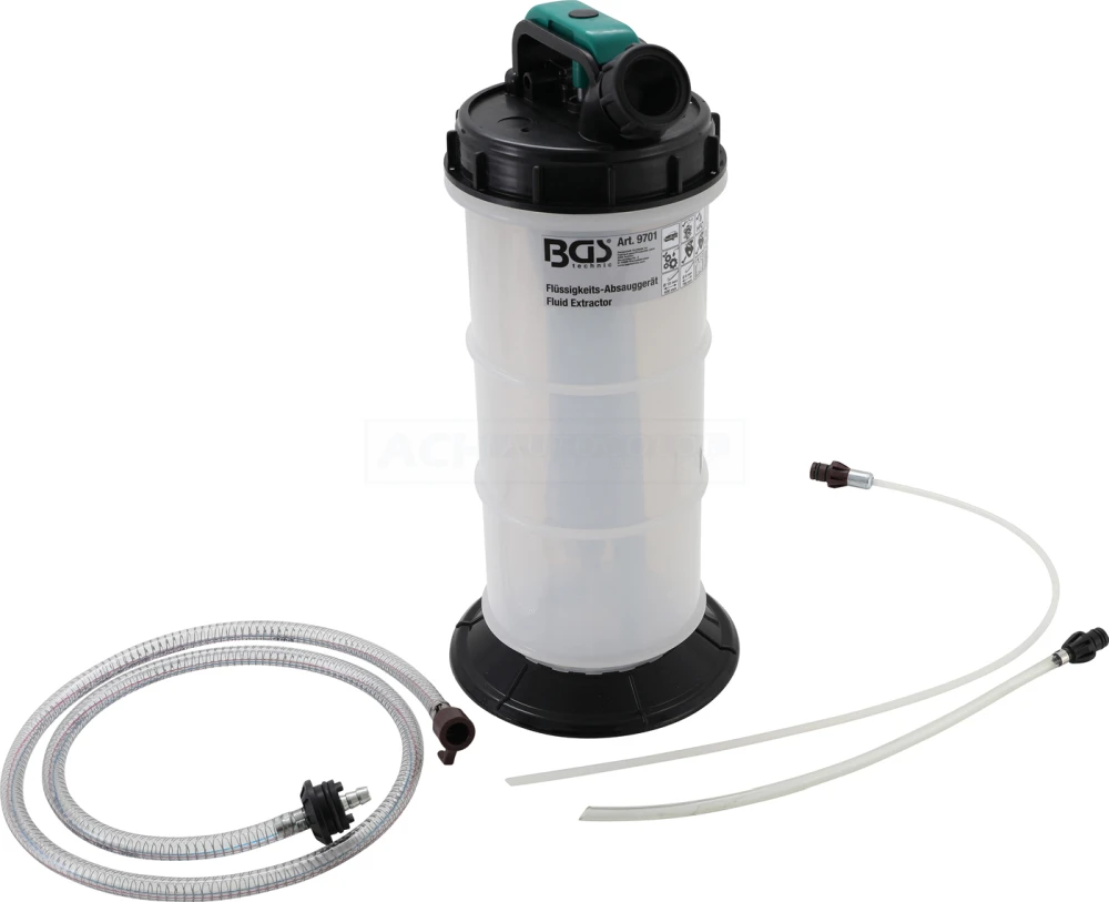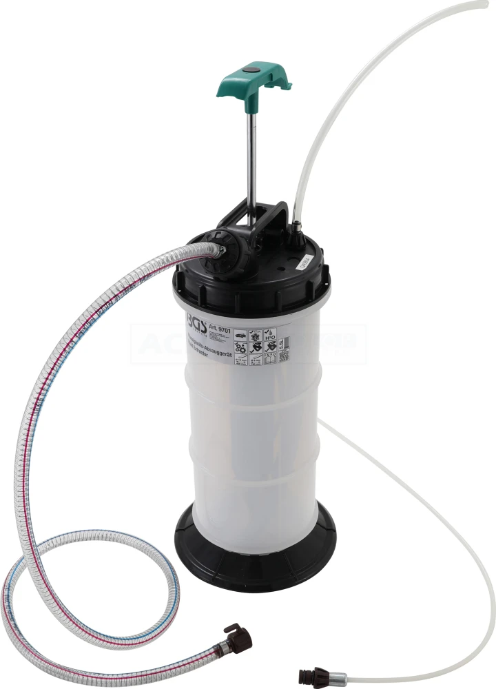- zum Extrahieren von Motor-, Getriebe- und anderen Schmierölen, auch geeignet für andere Flüssigkeiten mit niedriger Viskosität, wie z. B. Wasser und Frostschutzmittel