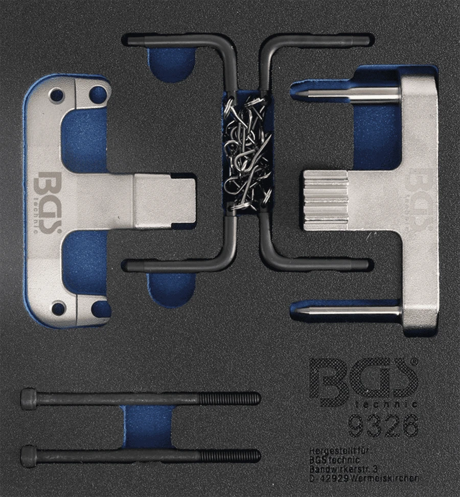 - enthält Werkzeuge zum Einstellen der Nockenwelle und Blockieren der Kurbelwelle (Schwungrad)