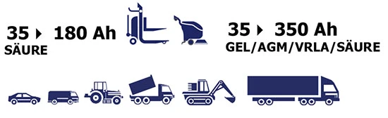 Batium ermöglicht eine vollständige Ladung aller Bleibatterietypen: