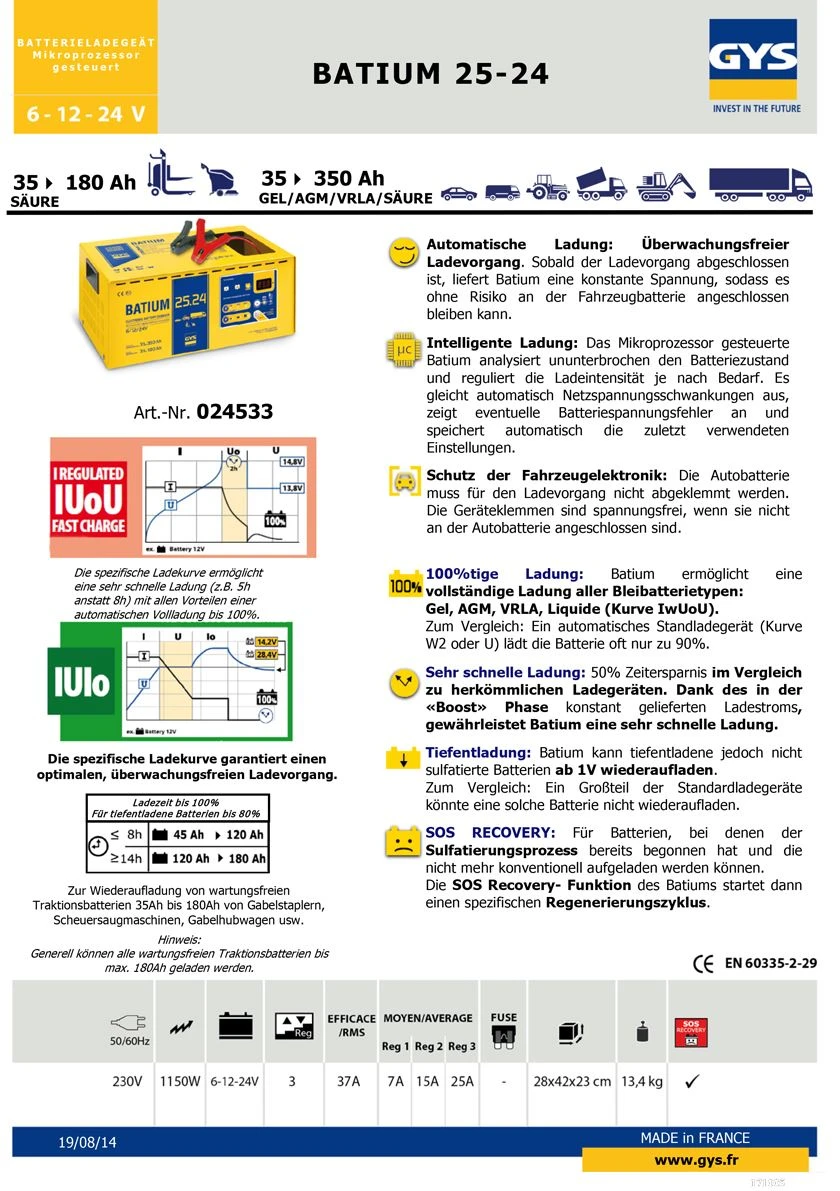GYS BATIUM 25 24 024533 automatisches Batterieladegerät mit Mikroprozessor jetzt 024830 (25.24X)