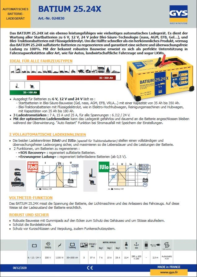GYS BATIUM 25.24X automatisches Batterieladegerät mit Mikroprozessor (vormals 024533)