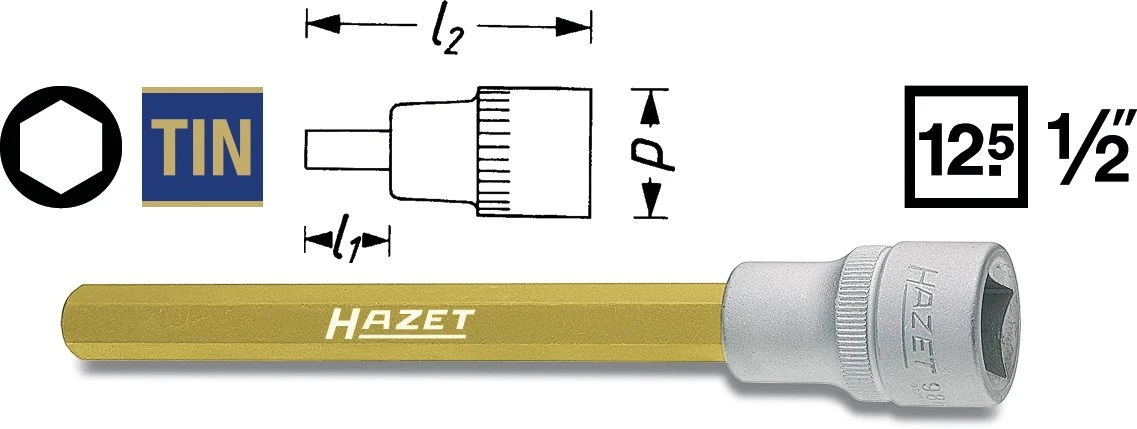 HAZET Steckschlüsseleinsatz für Bremssattel 9mm 1/2Zoll 12,5mm Sechskant 986LG-9h
