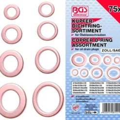 BGS Dichtring-Sortiment | Kupfer | Zollgrößen | Für Öl-Ablassschrauben | 75-tlg. – 8144